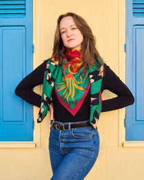 Chez Creature Marseille, chaque foulard est une composition de couleurs, de lumière et de mouvement. Pour les modèles en laine de la collection L’Enchanteur, nous avons choisi une impression double face : une technique rare et exigeante qui permet d’obtenir un rendu coloré et intense, quel que soit le sens du tissu.