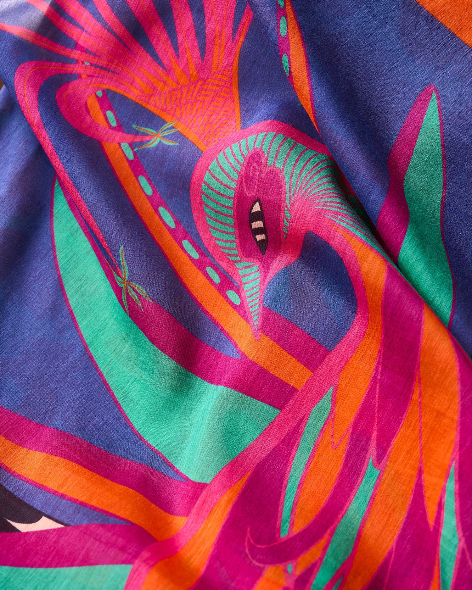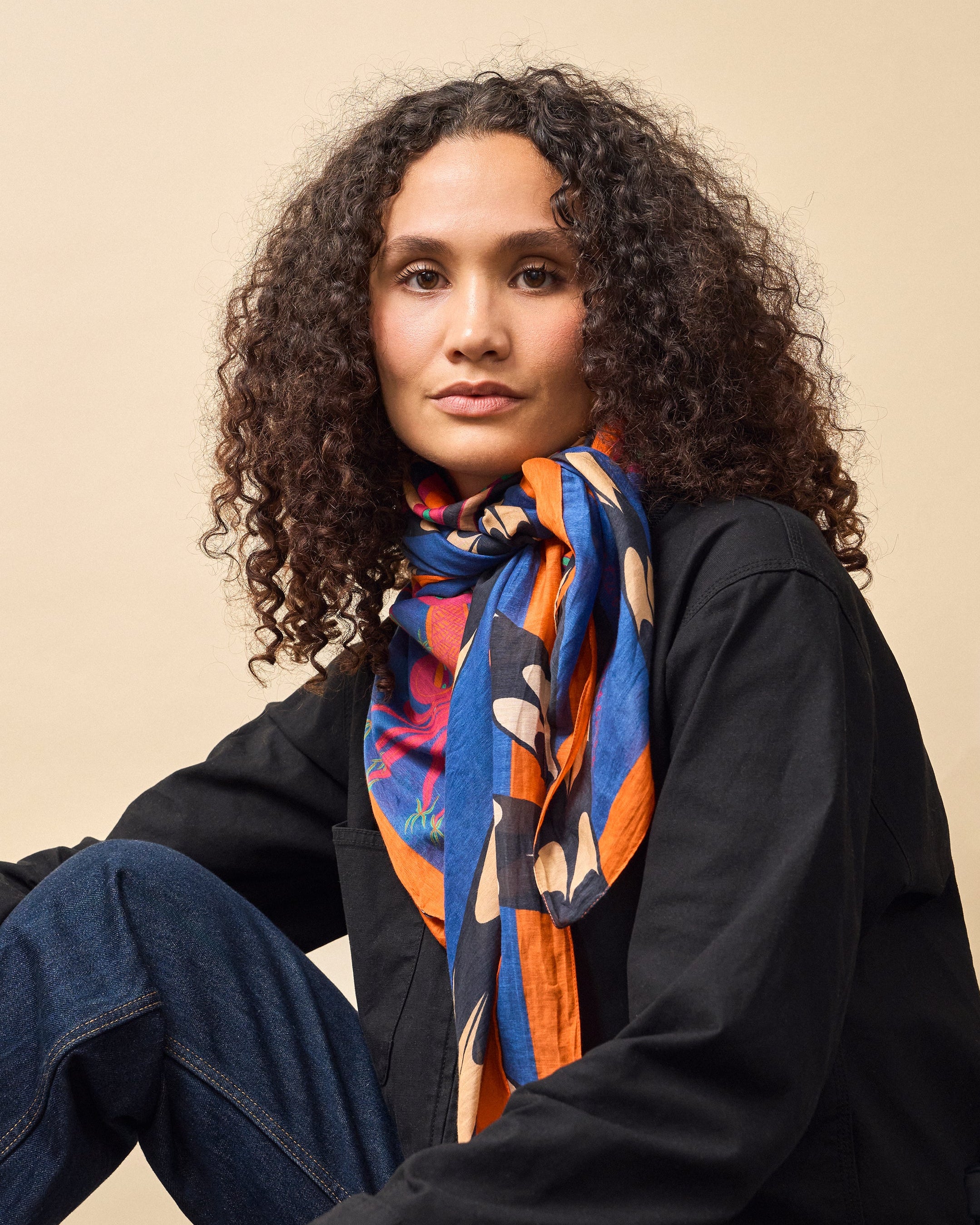 Adapté aux journées ensoleillées à porter en accessoire dans les cheveux ou en paréo par exemple, il se prête aussi aux soirées d’été ou aux douces journées de mi-saison, en couvrant le cou et les épaules. Polyvalent et élégant, ce foulard se porte selon vos envies. Son format généreux et sa texture fluide en font un accessoire incontournable pour sublimer votre style. Découvrez notre guide des tailles