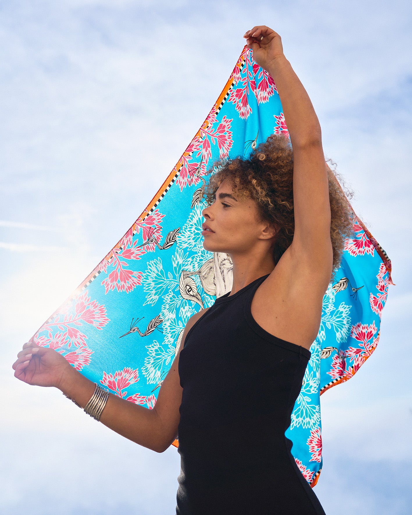 Nos foulards se portent autour du cou, du buste, en ceinture et dans les cheveux. C’est l’accessoire indispensable à tous les moments de la journée et de la vie et la diversité des tailles proposées et des coloris permet d’y répondre à merveille. Découvrez notre guide des tailles