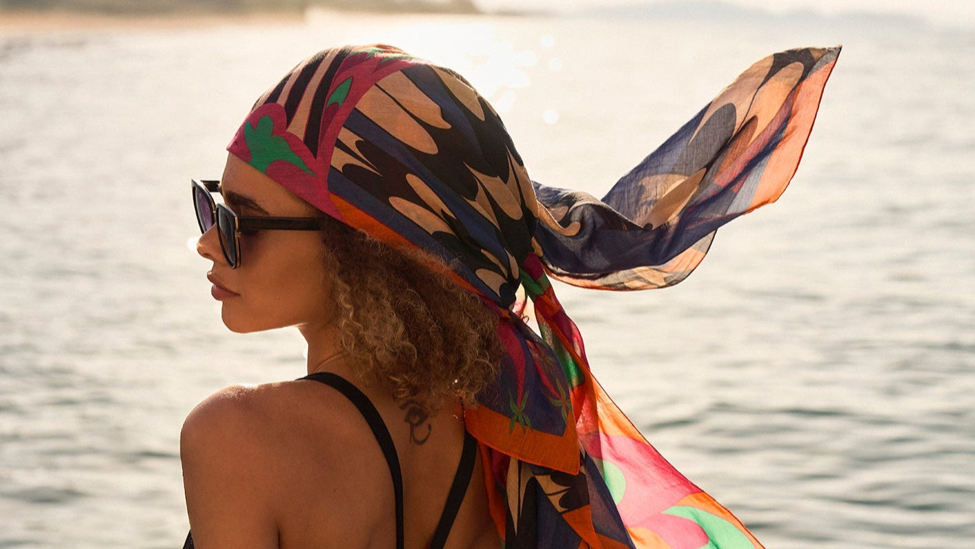 Suitable for sunny days to wear as a hair accessory or as a pareo, for example, it is also suitable for summer evenings or mild mid-season days, covering the neck and shoulders. Versatile and elegant, this scarf can be worn however you like. Its generous size and fluid texture make it an essential accessory to enhance your style. Discover our size guide