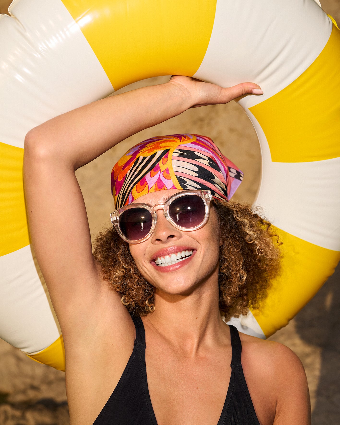 Suitable for sunny days worn as a hair accessory, for example, it also lends itself to summer evenings or mild mid-season days, covering the neck and shoulders. Versatile and elegant, this scarf can be worn however you like. Its generous size and fluid texture make it a must-have accessory to enhance your style. Discover our size guide