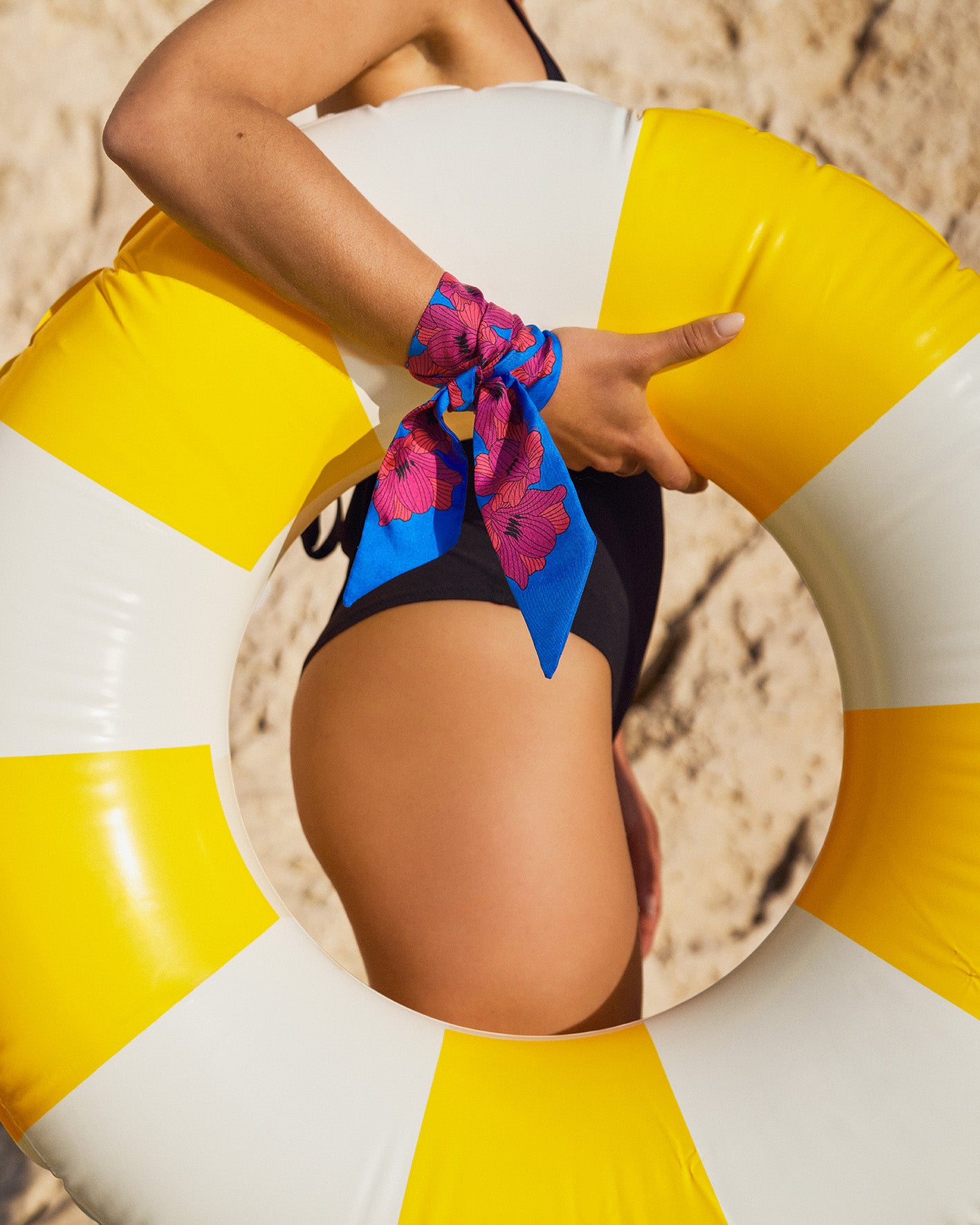 Our twilly can be worn around the neck, in the hair, doubled as a belt or tied around a bag. It is the essential accessory for all moments of the day and life.
