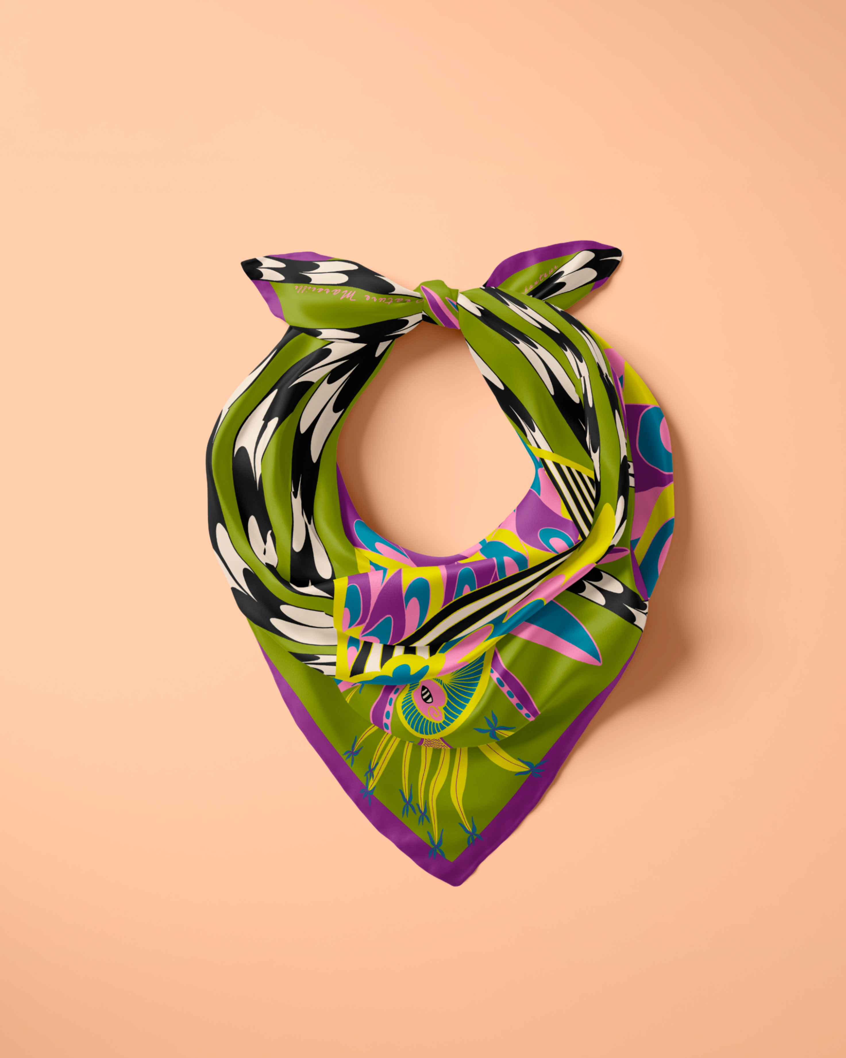 Our 70s-style square scarves can be worn around the neck, in your hair, or tied around a bag. They're the essential accessory for every moment of the day and every aspect of life, and the variety of sizes and colors available ensures there's a perfect fit. Check out our size guide.