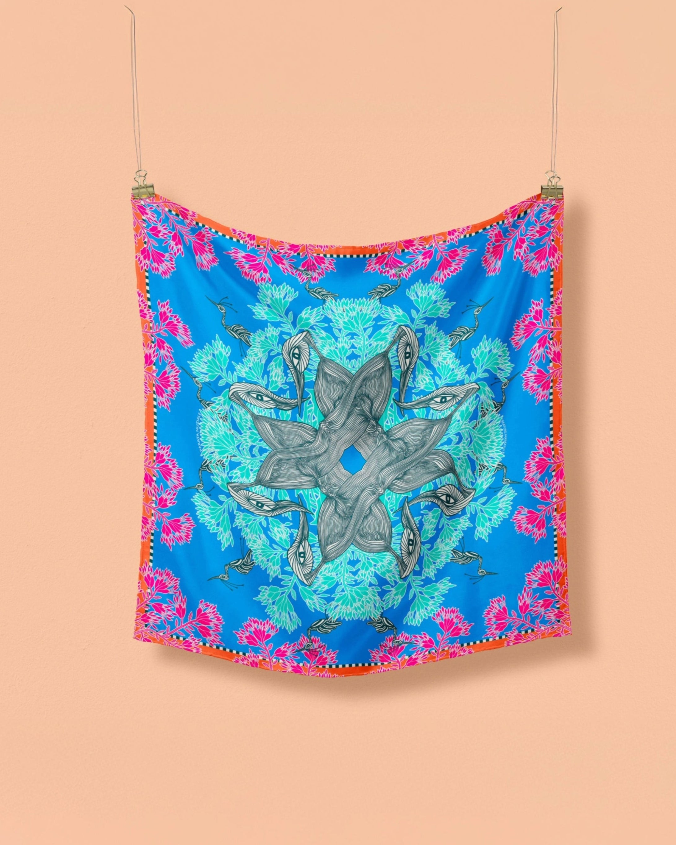 Nos foulards sont confectionnés en soie, une fibre noble et intemporelle. Nous avons choisi le twill de soie pour son toucher doux, sa tenue élégante et sa résistance. Imprimés et confectionnés en Italie, nos foulards bénéficient d’un savoir-faire artisanal qui sublime chaque détail du motif.