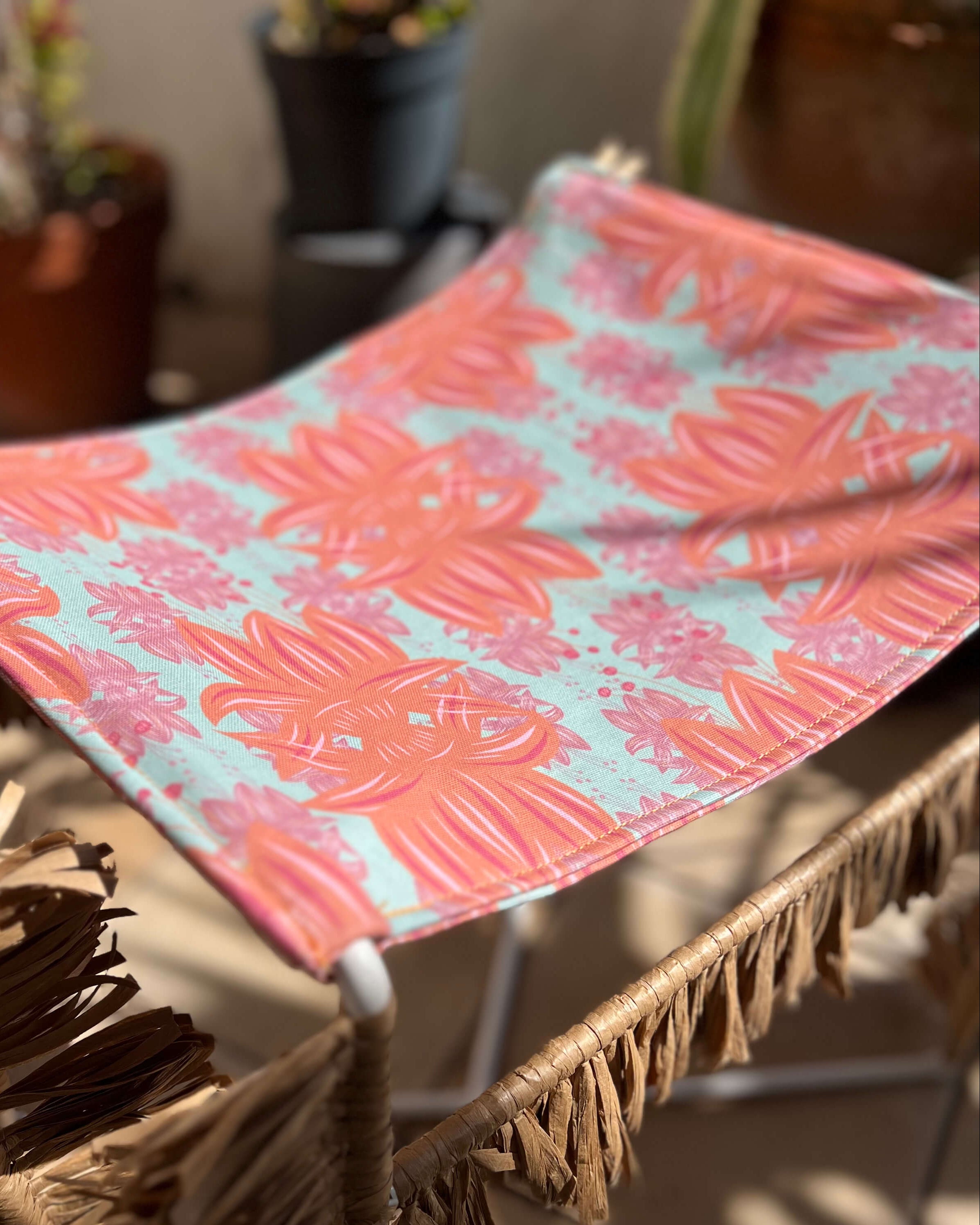 Le motif Canopée a été dessiné à la main par Pauline Paranthoën à Marseille, puis imprimé en France sur une toile de coton proposée au mètre, pour accompagner les projets sur mesure.